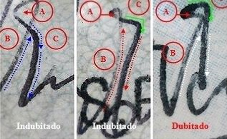 Determinamos la autenticidad o falsedad de las firmas en testamentos, escrituras públicas, poderes generales o especiales, certificado de acciones, reunión de junta de accionistas, letras de cambio, contratos de compra y venta, cesión de bienes, cheques, pagarés, firmas de recibido, firmas de visto bueno, escritos anónimos, autenticidad de sellos y certificación de bonos antiguos.